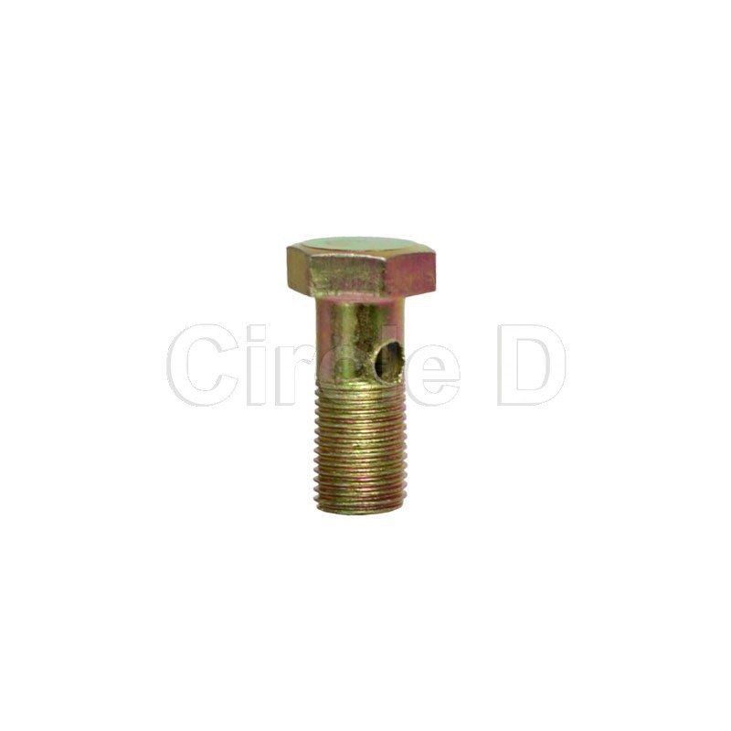 Hollow bolt. M10x1.0 thread, 22mm useable length, 14mm spanner.