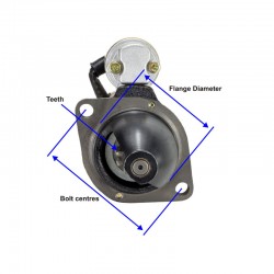 Replaces obsolete QD252. 4.5kW, 24volt. 11 teeth x 39.5mm diameter pinion gear. 120mm (2) bolt centres. 82mm diameter centre flange. 210mm length from mounting bolt face.