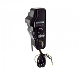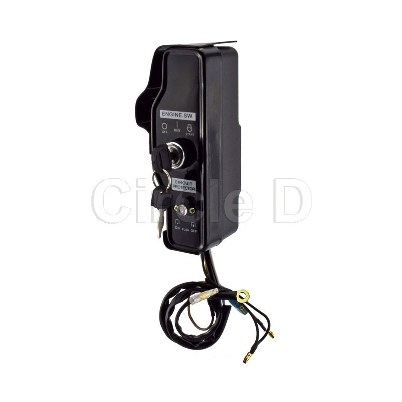 Key switch assembly with circuit protection for electric start stationary engines. Commonly bolted to the side of the engine.